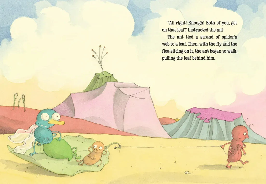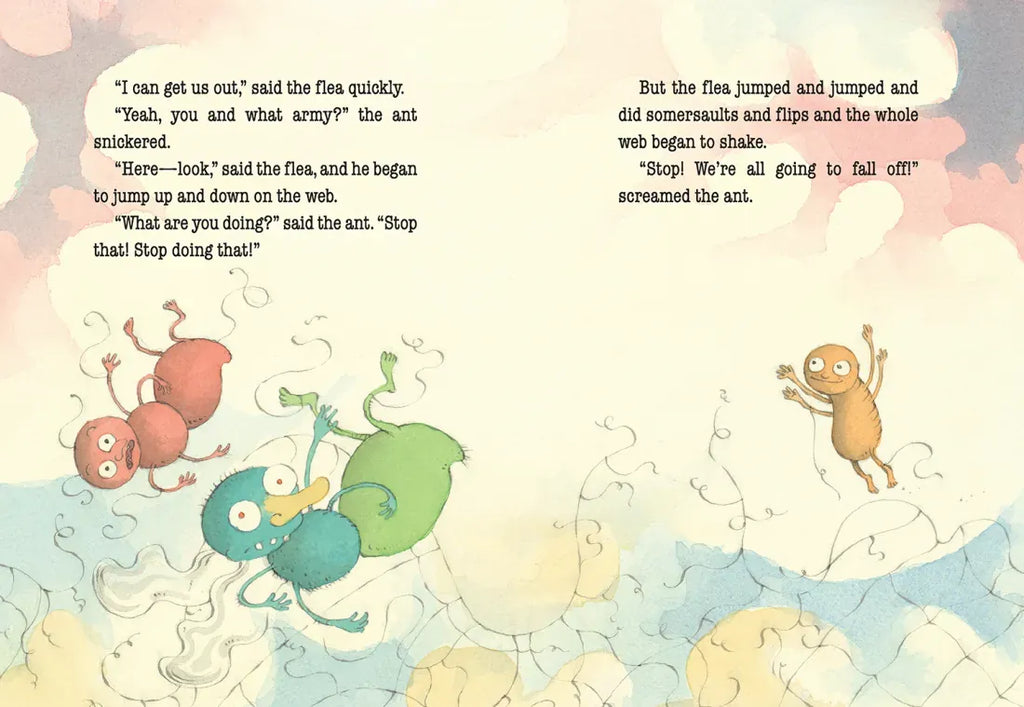 Ant and Fly are back! And this time they’re joined by Flea, newly escaped from the flea circus. Our mean Ant, the meanest ant there ever was, doesn’t think much of the tiny, annoying Flea, until Flea’s wits get them out of one sticky situation and . . . straight into another. Ant’s famous temper can’t save them now. The bugs are truly stuck with one another! Author Arthur Yorinks and illustrator Sergio Ruzzier return for the second story in a planned trilogy that introduces a new insect in each book. Picking up where the last tale left off, the text crackles with snappy banter and silly wordplay, while expressive illustrations capture all the entomological action. At heart an ode to the small but mighty, this zany sequel will deliver big laughs for the read-aloud crowd.