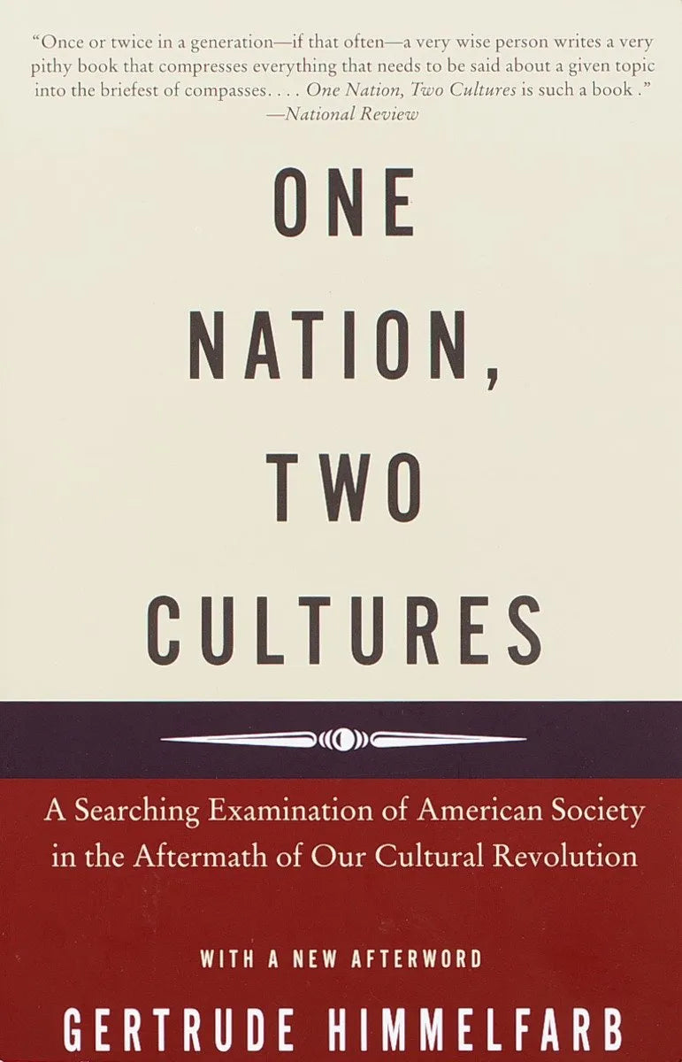 One side originated in the tradition of republican virtue, the other in the counterculture of the late 1960s. Himmelfarb argues that, while the latter generated the dominant culture of today-particularly in universities, journalism, television, and film--a "dissident culture" continues to promote the values of family, a civil society, sexual morality, privacy, and patriotism. Proposing democratic remedies for our moral and cultural diseases, Himmelfarb concludes that it is a tribute to Americans that we remain "one nation" even as we are divided into "two cultures."