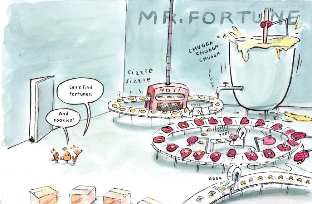 If you had a fortune cookie fortune that read: “Feed this cookie to a squirrel” would you do it? Norma thinks you would! And she quickly she gets to work devising a plan with friends Belly and Little B to sneak through the MR.FORTUNE cookie factory to get their own fortunes squirreled away inside of the treats.