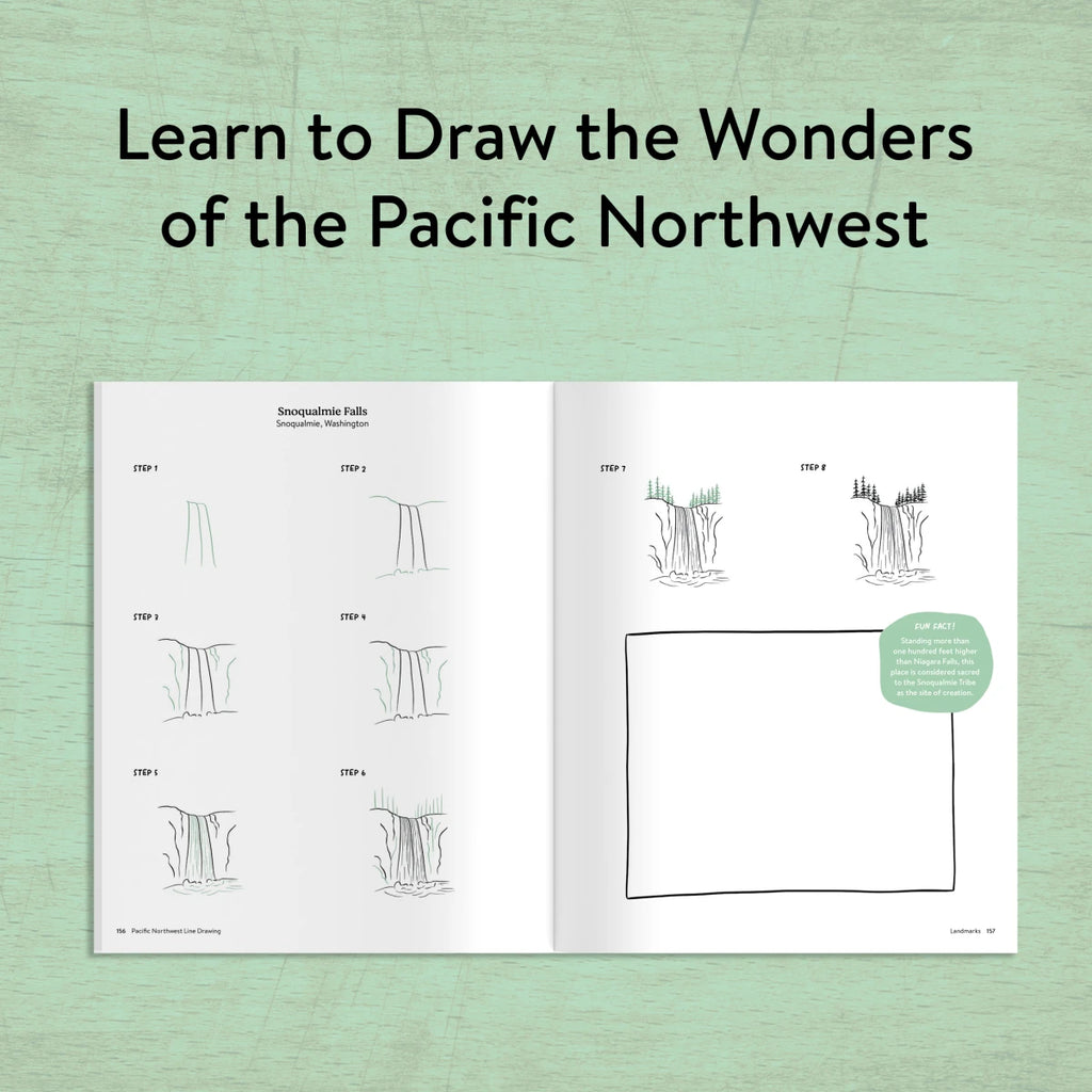 Learn to draw 150 Pacific Northwest natural wonders (plus iconic landmarks) in just a few simple steps each! Rooted in love for the PNW, this no-skills-necessary how-to-draw book will encourage users to stop and notice the beauty that surrounds them. Here you’ll learn the basics of line drawing as well as facts about the ecology, plants, wildlife, and landmarks of this amazing region.