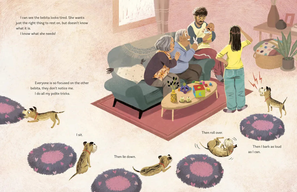 Welcoming a new baby can be hard, especially when you’re used to being the center of attention! When it’s time for Pepita, the puppy of the family, to meet the brand new bebita, she’s in for a few surprises. What do you mean that Mami is too busy to bounce a ball for Pepita? And Papi seriously can't find any time to scratch her ears? This new bebita is a bit of a problem....