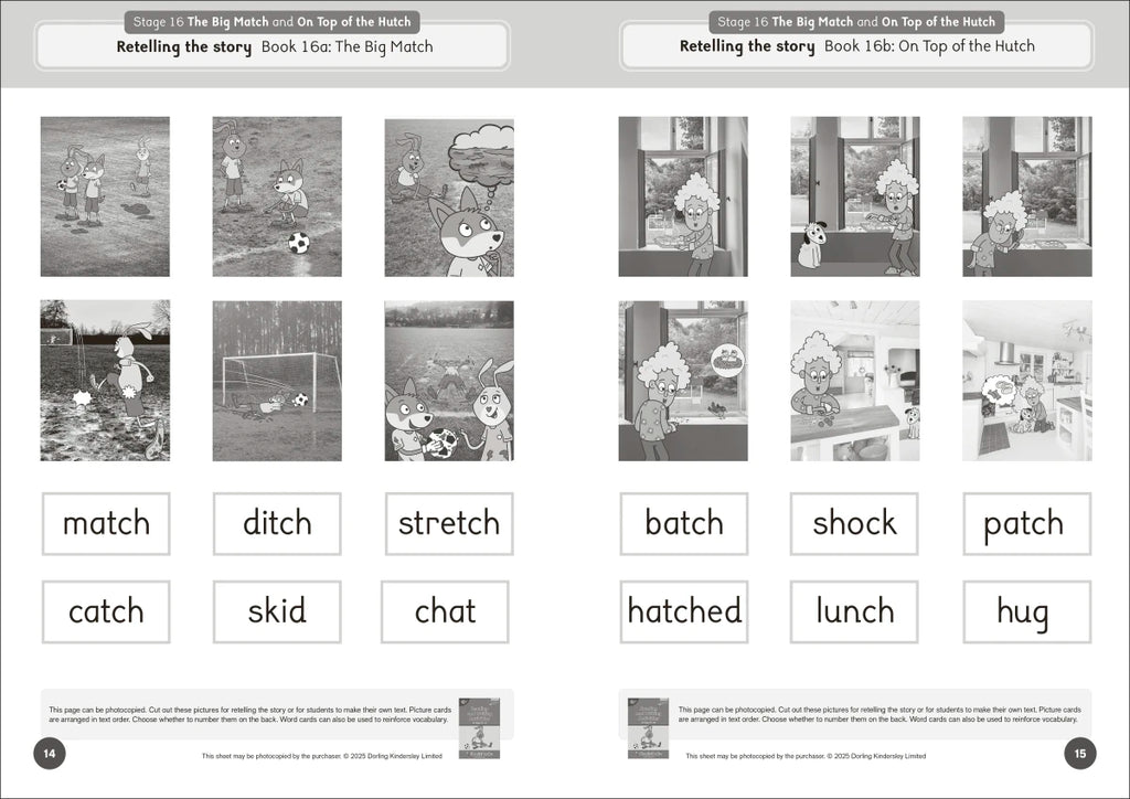 Dandelion Launchers Extras Stages 16-20 Reading and Writing Activities comprises ten books and is aimed at children in Pre-K and Kindergarten. This series takes children on a carefully structured progression, introducing the spellings ‘tch’ and ‘ve’ and simple two-syllable words.