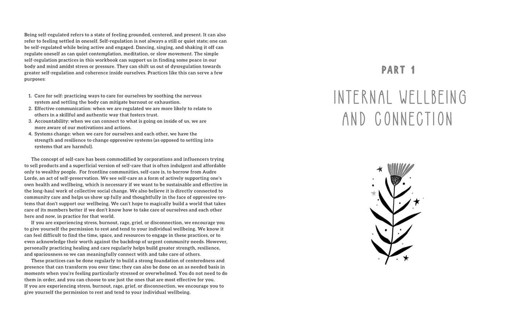 Readers are invited to try out the practices alone, with friends, in ceremony, at work, and in nature—to pick those that resonate most and use this toolkit in service of the care and transformation we each need to show up, sustain our work, and thrive for ourselves and our communities.