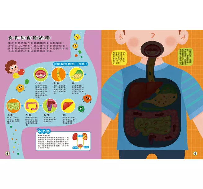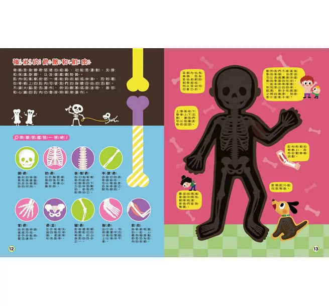 透過特殊的設計,引導孩子揭開皮膚下的骨骼、肌肉、器官,