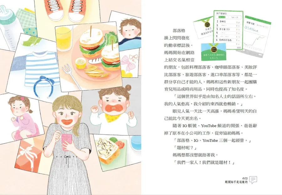 《#我的媽媽是網紅》揭示了一個網紅家庭,媽媽和女兒之間的曲折關係。小說透過輕鬆的口吻、細膩的筆觸和真實的情感流露,引領讀者進入一個關於權利、成長和追求自我的故事。