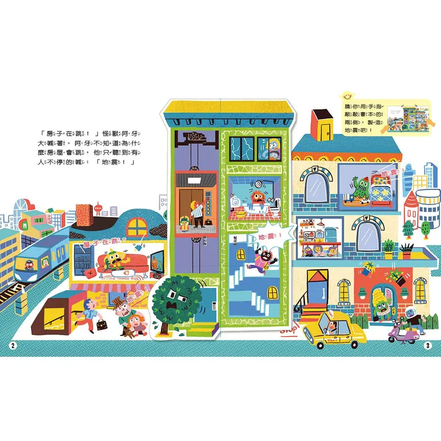 ★操作方式:立體黏頁(打開後輕敲大樓,模擬地震) 。