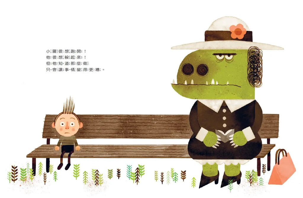 一個星期六早上,小羅竟然在公園裡遇見了柯比老師!他和柯比老師展開了一段出乎意料的互動——他們一起救帽子、聊鴨子、射紙飛機,彼此有了全新的理解與認識。當小羅回到學校再見到柯比老師時,他眼中出現了不一樣的風景:老師還是很嚴厲、會吼叫,但……她還是怪獸嗎?