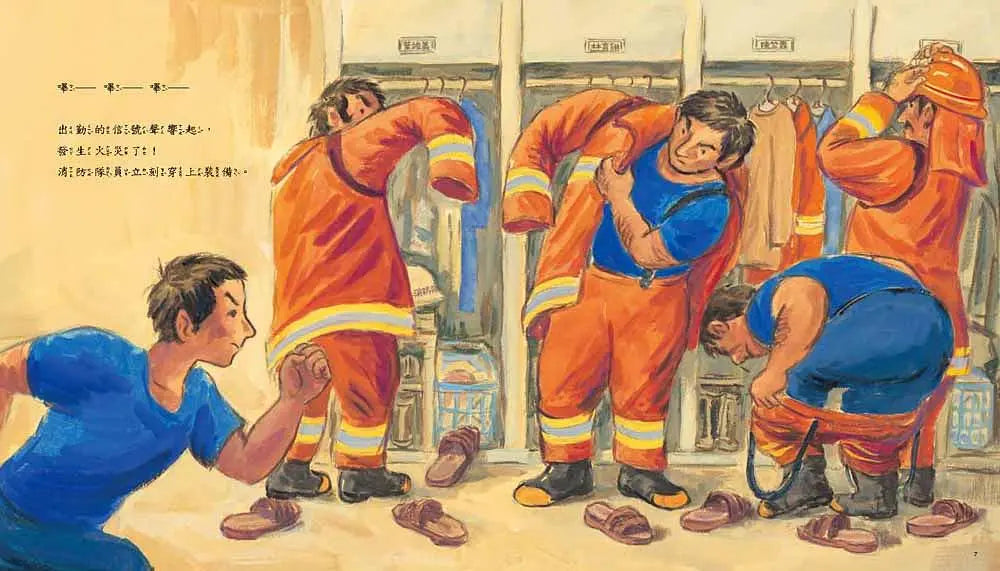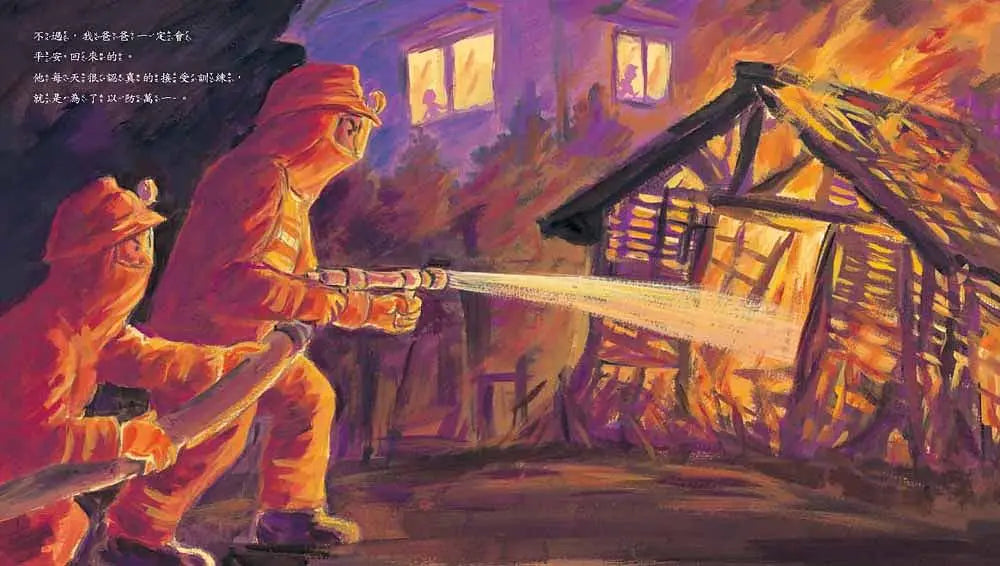 別人家的爸爸放假時可以陪孩子遊玩,我家的爸爸沒辦法,因為他是消防隊員,必須隨時待命,維護鄰里的安全,不管哪裡發生災難,都得第一個趕到現場。