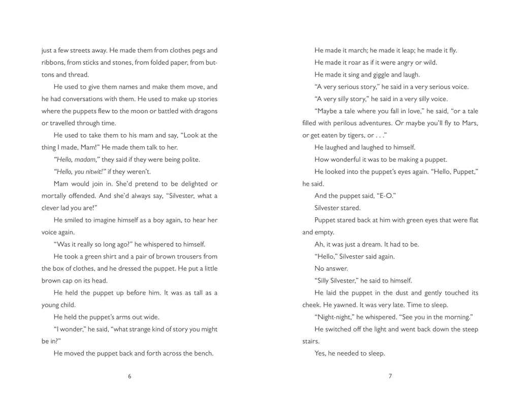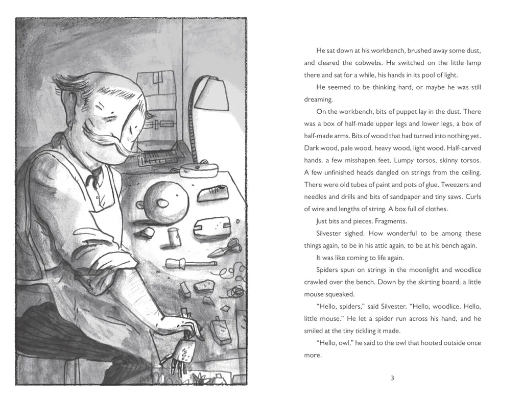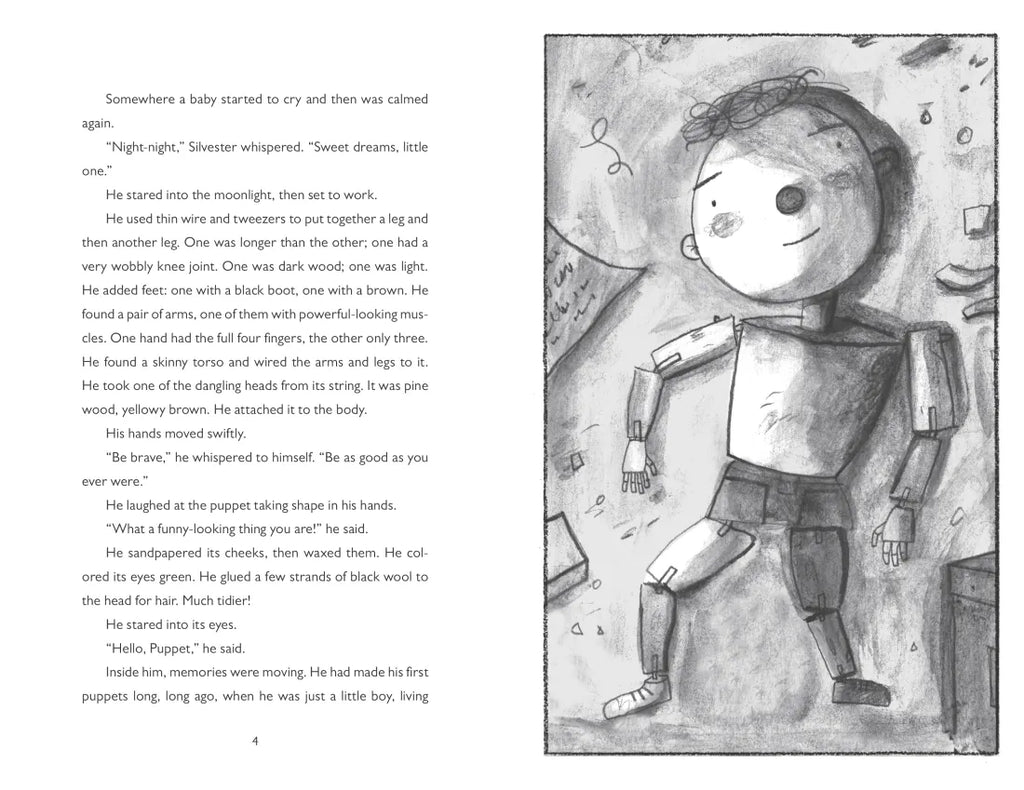 What should a puppet master do when he’s old and alone, and all his puppets are gone? Sylvester makes one last puppet. But this one is different. When the old man speaks to him, Puppet speaks back. And then he walks…