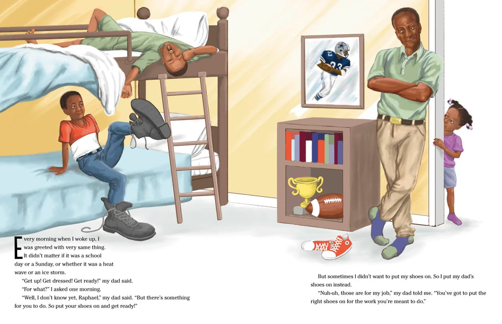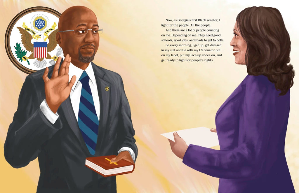 Before Raphael Warnock became a pastor and the first Black senator from Georgia, he was a little boy whose father told him to get up, get dressed, put on his shoes, and get ready! So that’s what he did, along every step of his journey. From his work boots to his marching band shoes to his shiny lace-ups, Senator Reverend Warnock found the right shoes to fit his feet and to carry him toward his dreams.