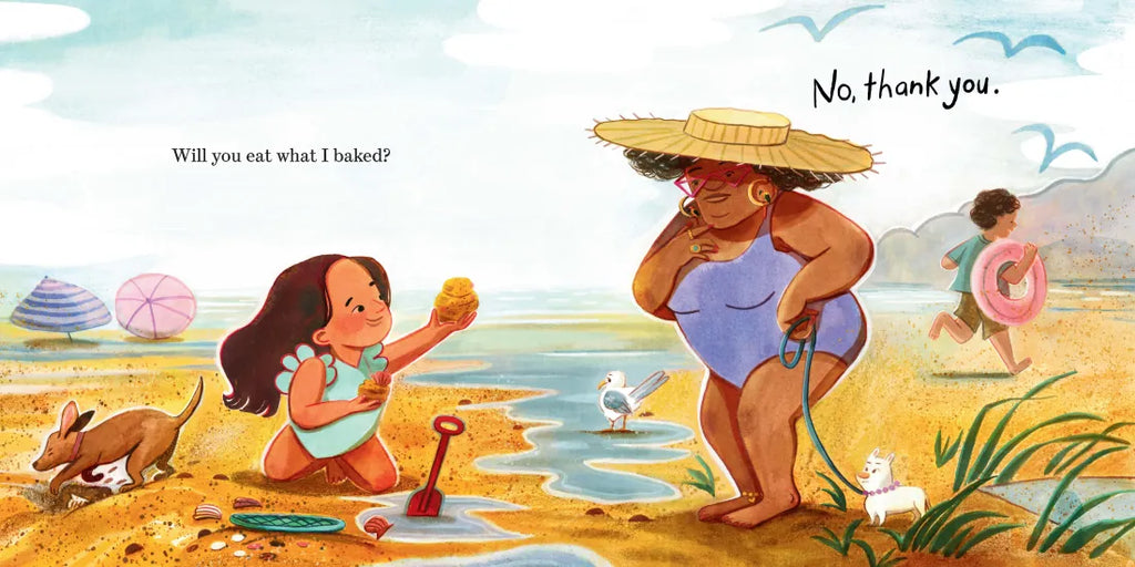 No matter how yummy her rock-sprinkled cakes, seaweed pies and sea foam cream puffs look, this little beachside baker can’t seem to get ANYONE to eat her sandy sweets. Even the seagulls turn their beaks up! Will she ever find a customer willing to give them a try?