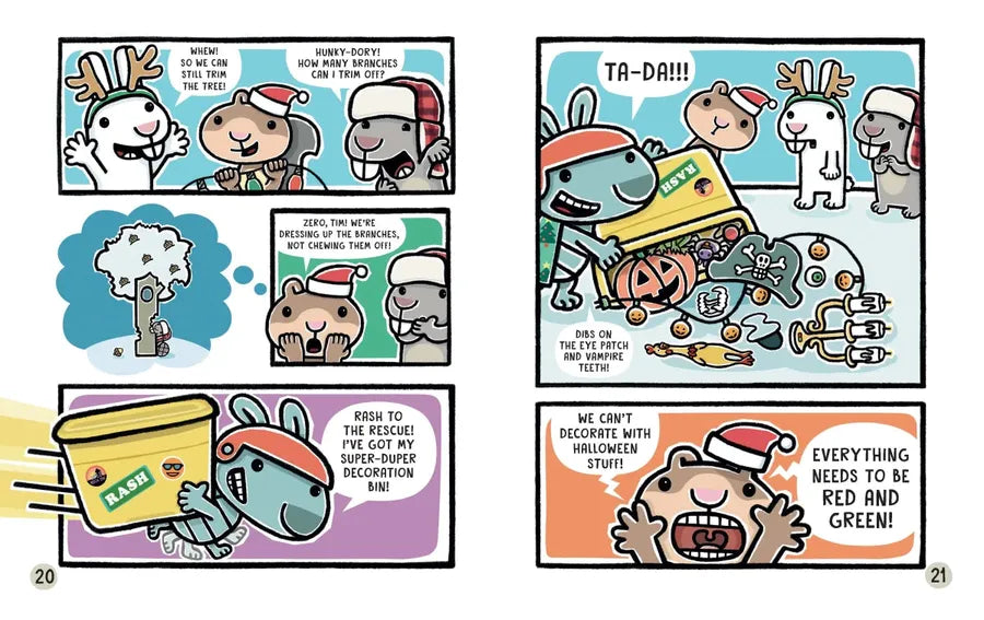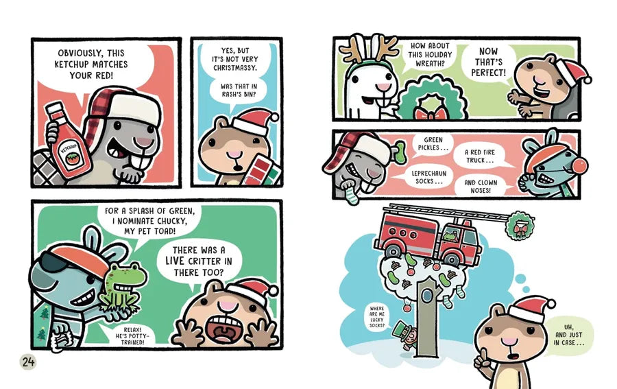 In his third NUTTY ADVENTURE, Scaredy is getting ready for Christmas ahead of time . . . WAY ahead of time (June). When December finally rolls around, Scaredy has everything in place: perfect red-and-green decorations, a perfect get-together planned (no parties!), perfectly personalized gifts for each of his friends, all the required permits for gingerbread-house construction (perfectly filled out) and, of course, a perfectly secured premises with a perfect spot for Santa. Yup, nothing can possibly go wrong . . . until friends Rash and Tim break the decorations! But Scaredy is filled with the spirit of the holiday and happy to help his friends finish their Christmas shopping. (Unless they're shopping for Gary the germ?!) Prepare to get frestive with Scaredy and his friends!