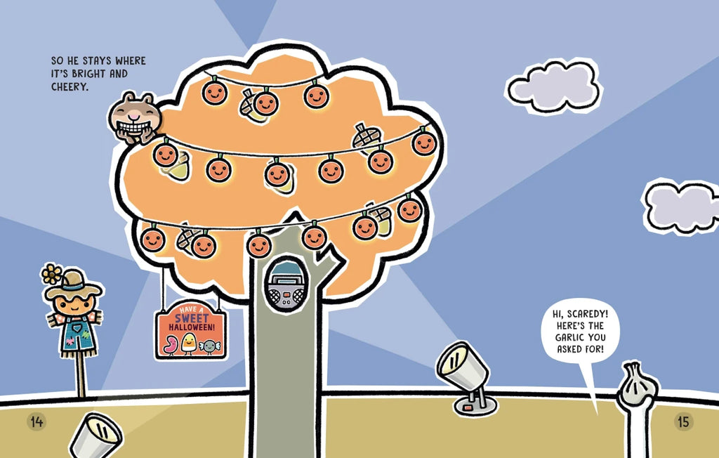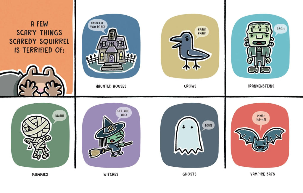 Being scared is nothing new to Scaredy Squirrel in his fourth NUTTY ADVENTURE. That's why he's fully prepared for Halloween: bright lighting? Check. Adorable pumpkin décor? Check. Costumes? You bet. Ghosts, vampires and monsters? That's a big negative. And no trick-or-treating; Scaredy doesn't want to risk cracking a tooth! But with some gentle support and encouragement from his friends, Scaredy learns he can still have a good time and overcome his fears . . . and maybe even get a little spooky! (But just a little.)