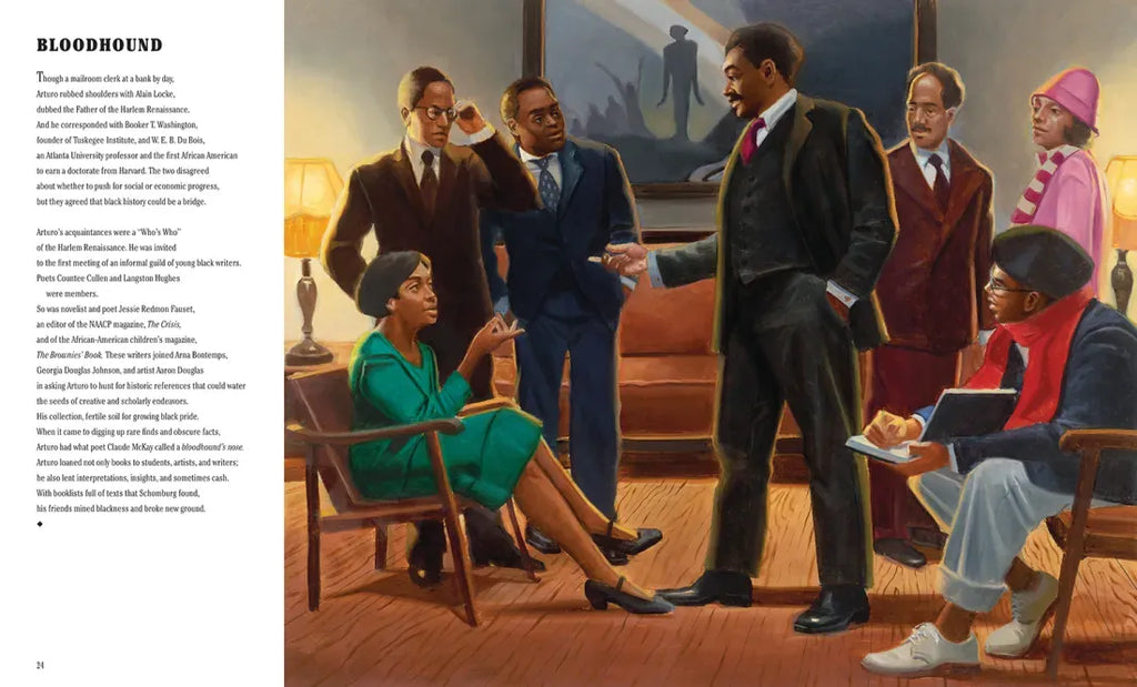 In luminous paintings and arresting poems, two of children’s literature’s top African-American scholars track Arturo Schomburg’s quest to correct history.
