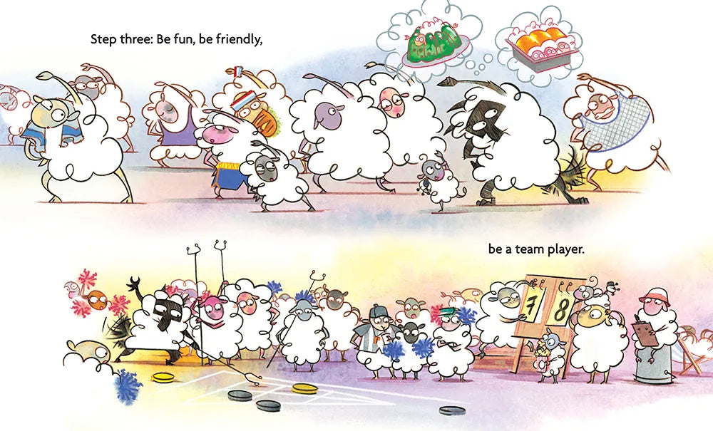Wolf dreams of tasty sheep—sheep sandwiches, sheep sushi, sheep tacos! In his clever sheep costume, he infiltrates the friendly neighborhood herd, blending in by helping with chores, reading bedtime stories to the lambs, and working up a sweat in sheep aerobics class. Wolf’s sneaky plan works so well, he becomes part of the family. And suddenly, the sheep don’t seem quite as tasty. . . . With a charming twist ending and lots of visual fun—including the running theme of Wolf’s disguise not being quite as convincing as he thinks—this hilarious take on the wolf-in-sheep’s-clothing will have readers howling for more.