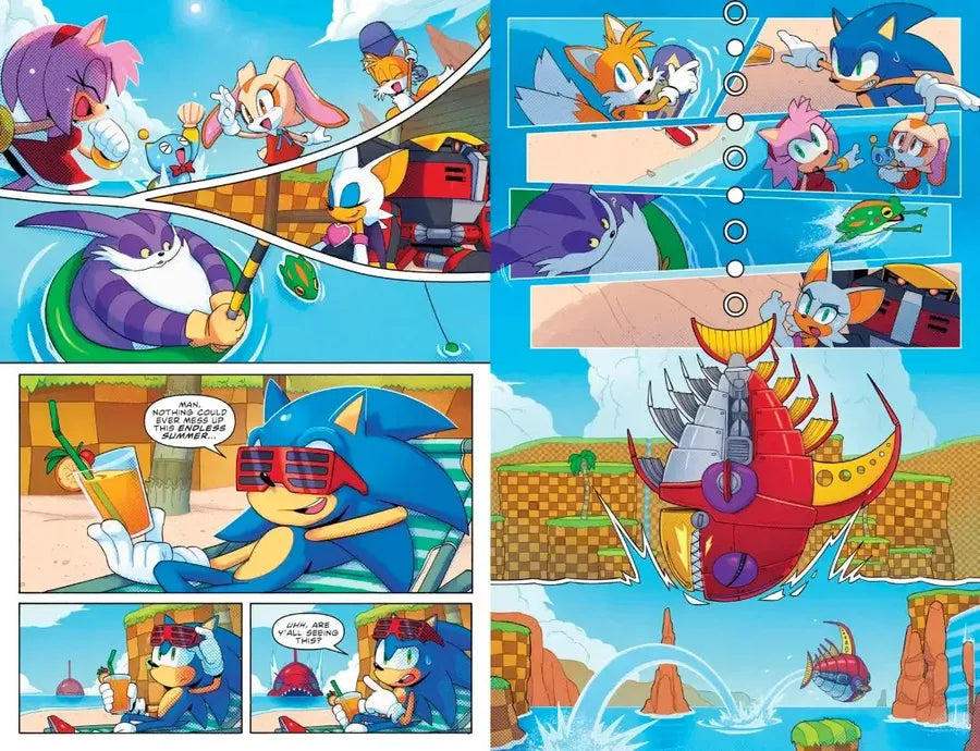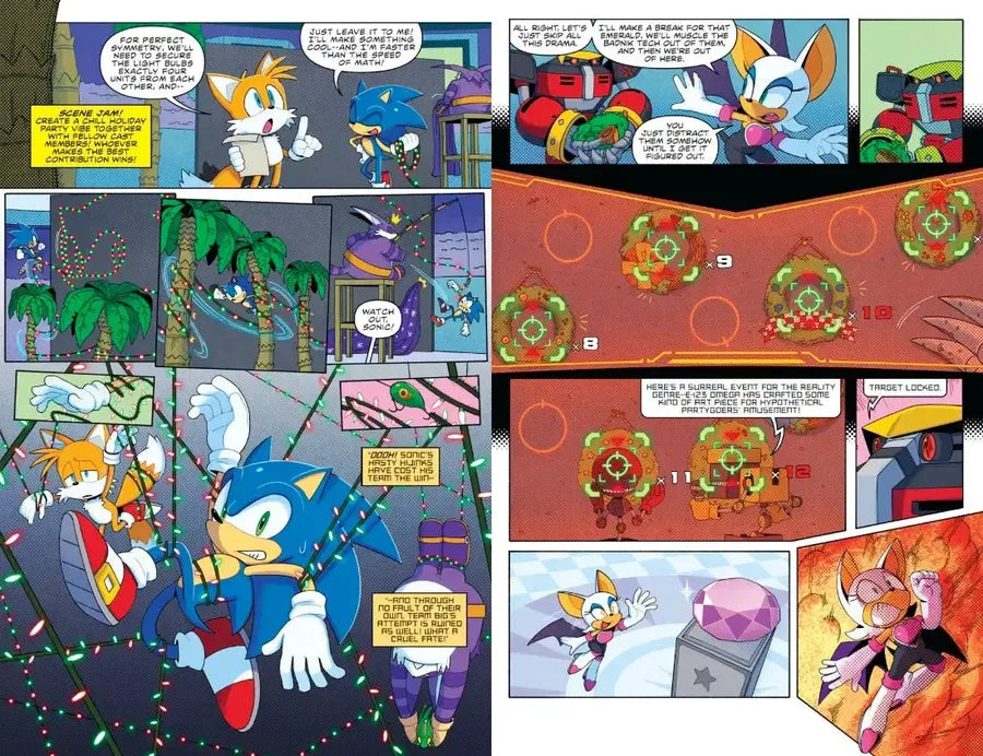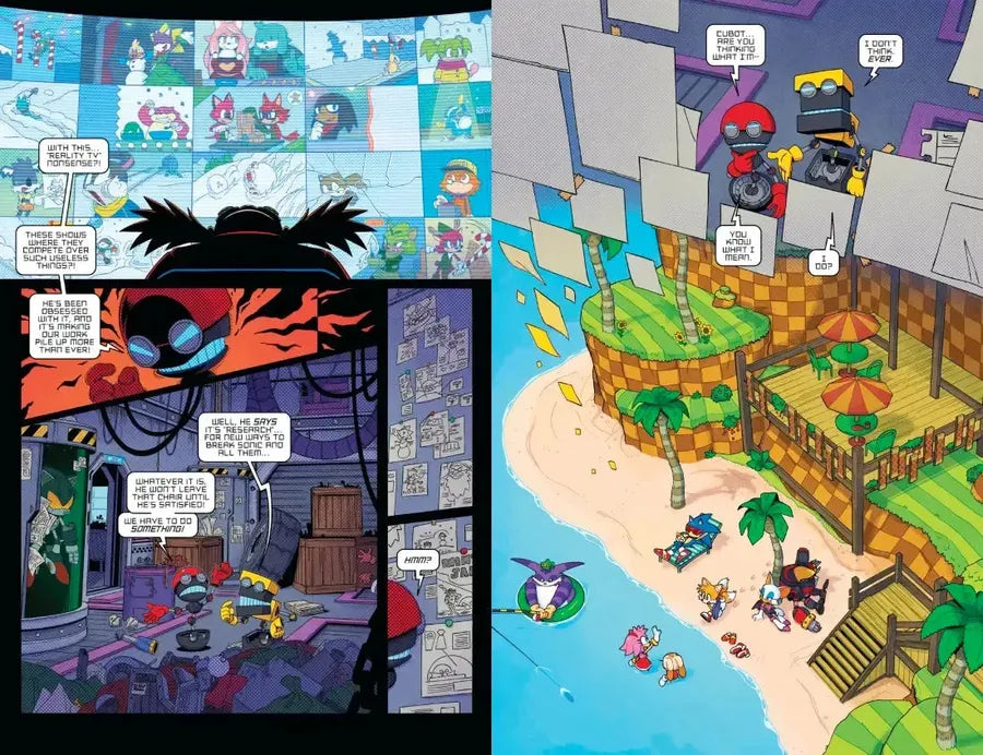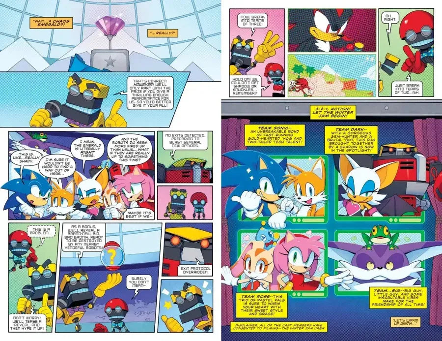 Then in two one-shots Sonic and pals are getting into the vacation spirit. The Winter special brings holiday fun, food, and plenty of snow! But when Dr. Eggman's robots start making trouble, the gang find themselves in a real Winter Jam! But soon after Spring has sprung! The flowers are in bloom, and so is trouble! When Sonic, Tails, and friends try to take some downtime, they run into a mystery that’s spring broken! A seasonal whodunit in the Sonic style!
