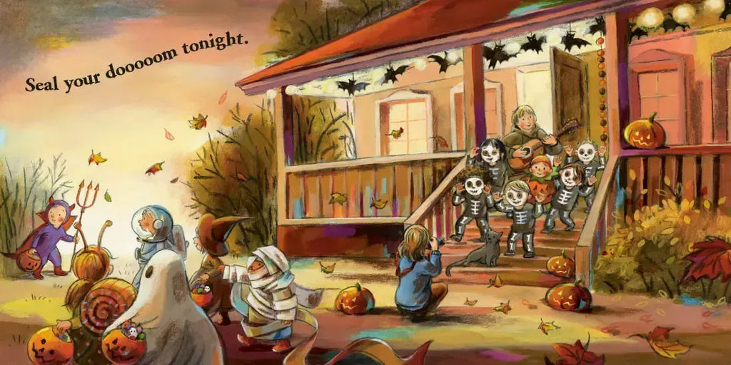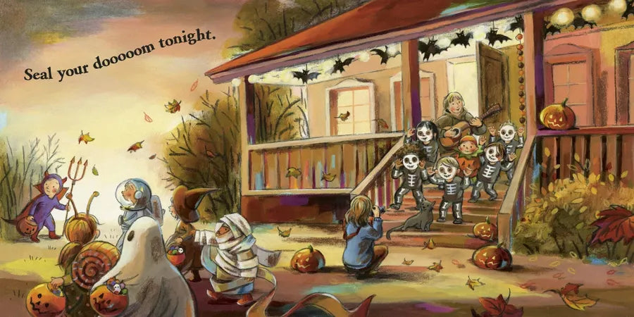 Follow along as five little skeletons go trick-or-treating on Halloween night. But when they take their scares too far, can a skeleton dance save the day?