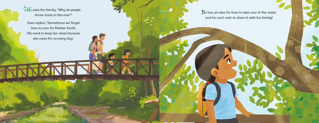 Bo, a proud Potawatomi boy, is excited to enjoy long summer days tending his garden, walking his dog, and playing in the river with his big sister, Dani. When he discovers that his family's favorite spot has been polluted with garbage, Bo realizes that caring for Earth is part of what makes summer special. And when he overcomes his shyness and invites others to join in, he discovers that summer's magic has even more surprises in store.
