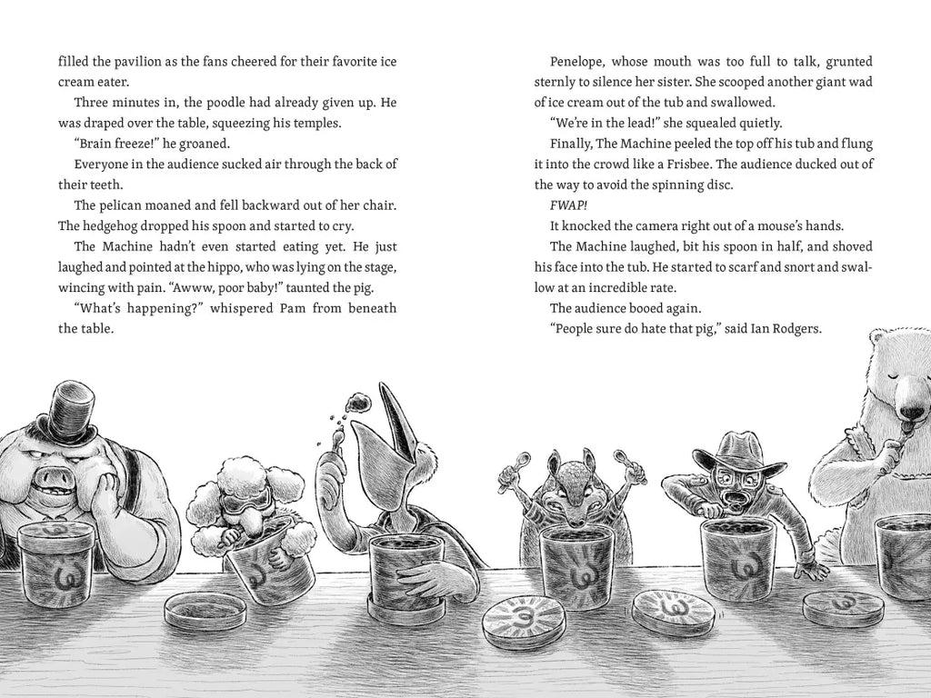 Each story features black-and-white interior illustrations from a different artist, including Daniel Salmieri, Charles Santoso, Liniers, Emily Hughes, Nicole Miles, and Seaerra Miller, making this book unlike any you've ever seen. And exclusive to the paperback, you'll also find six more stories inspired by The Ice Cream Machine, written by kids like you and hand-picked by Adam Rubin himself! So grab a cup or a cone, and watch out for brain freeze! You'll definitely want to save room for this treat.