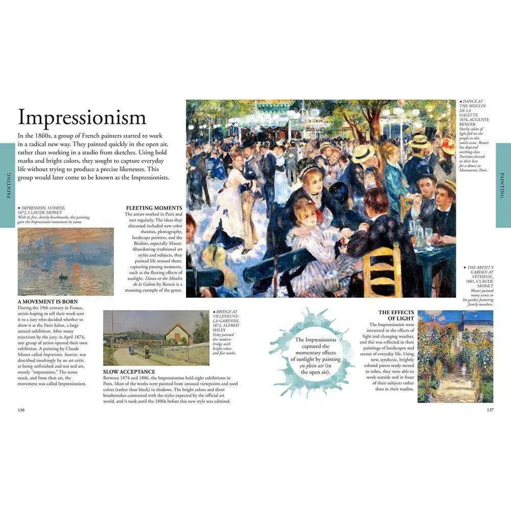 From ancient cave paintings to modern-day street art, this gorgeously illustrated art book for children traces the development of painting, sculpture, and photography through the ages. It's the ultimate introduction to the world of art for kids! A must-have volume for children curious about the arts, as well as parents, carers and educators seeking an accessible and visually-engaging encyclopedia for children all about art history.