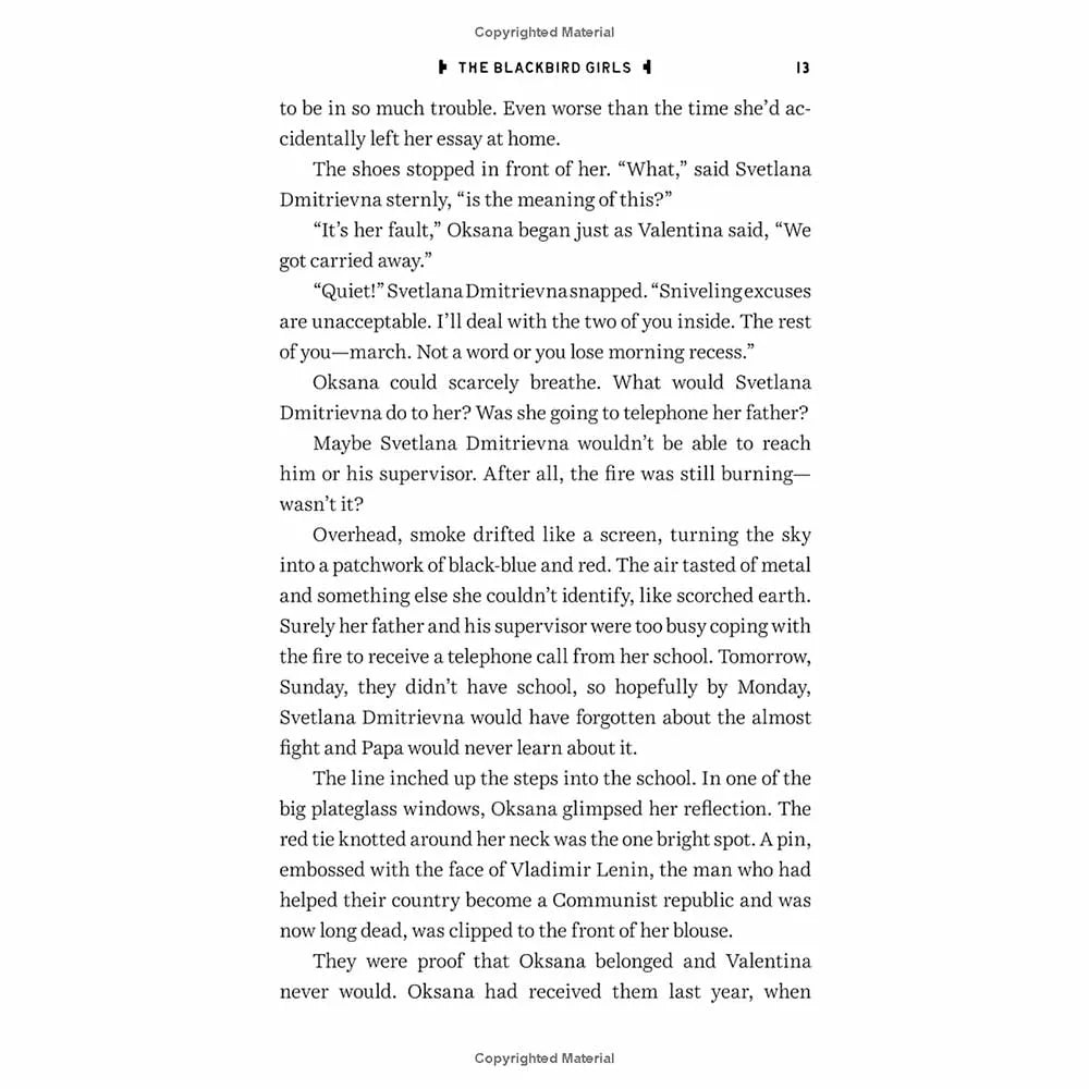 Told in alternating perspectives among three girls--Valentina and Oksana in 1986 and Rifka in 1941--this story shows that hatred, intolerance, and oppression are no match for the power of true friendship.