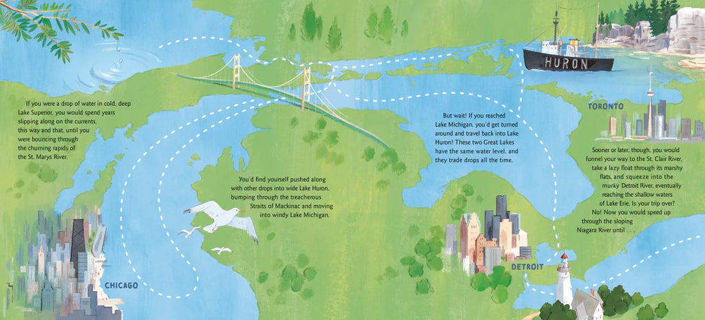 Follow along as a drop of water in this enormous system and uncover its dramatic journey from lake to rive to lake, over Niagara Falls to lake and river again, and finally into the Atlantic Ocean.