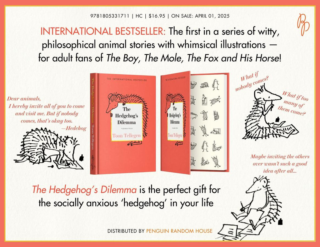 An international bestseller, with more than 1 million copies sold in the Netherlands, The Hedgehog’s Dilemma is the perfect gift for the shy, retiring ‘hedgehog’ in your life. This lovely—and loving book—addresses deep emotional and philosophical themes with humor, kindness, and intelligence.