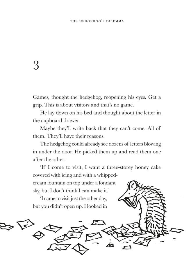 The hedgehog is feeling rather lonely, so one day he decides to invite all the other animals for a party. But the hedgehog is also rather a shy, reserved animal, and is terribly worried about doing or saying something he shouldn't, and about all the things that could go wrong.