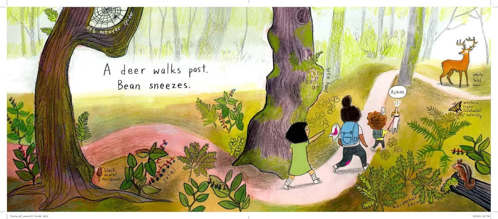 ARTFUL AND EDUCATIONAL: The book includes Wren's sketchbook that highlights discoveries the kids make along the trail, plus a glossary, scientific backmatter, and abundant labels of the flora and fauna of a Western woodland throughout for learning about various plants and animals.