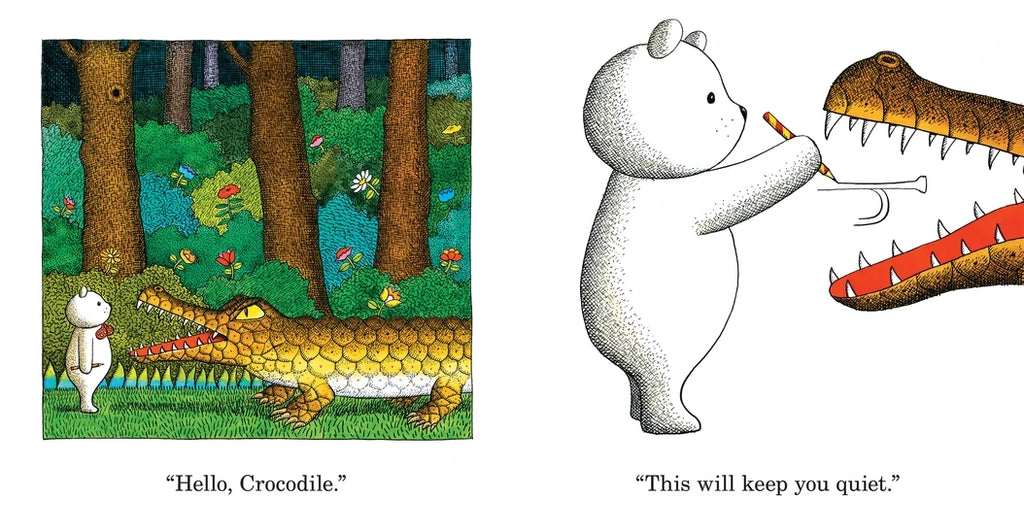As a bear strolls through the forest, he meets a lonely gorilla, a noisy crocodile, a lion, and even an elephant. They all look as if they are missing something, so the bear steps in to save the day, using his magic pencil to draw just what they are looking for. Originally published in 1988, this enchanting story by a picture-book master is available again for a brand-new audience.