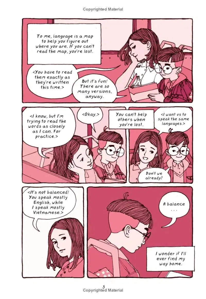 This beautifully illustrated graphic novel speaks to the complexity of family and how stories can bring us together even when we don’t know the words.