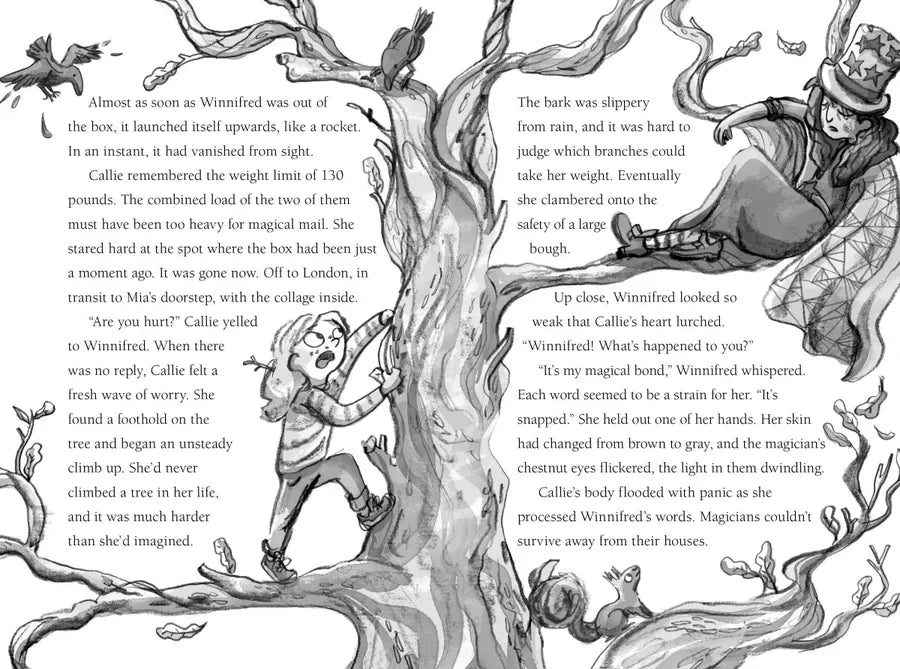 Ten-year-old Callie is desperately homesick. She misses everything about living in London—the apartment building where everyone has known her since she was a baby, her best friend, all the places that remind her of her mother, who died three years ago. She doesn’t care to get to know Northern Ireland, no matter how friendly her next-door neighbor Sam is. Then a magical house crash-lands upside down in Callie’s backyard, and its magician, Winnifred, turns to Callie for help. The Wanderdust that powers the house and keeps it (and Winnifred) healthy has flown away, leaving Winnifred at the mercy of malicious fairies and dangerous giants. She can’t leave her house, so it’s up to an eager Sam and a reluctant Callie to find the missing Wanderdust and bring it home again. And maybe, along the way, figure out what home means to Callie.