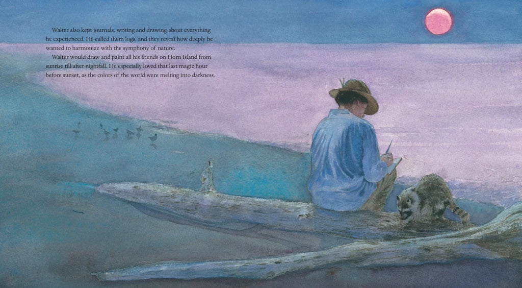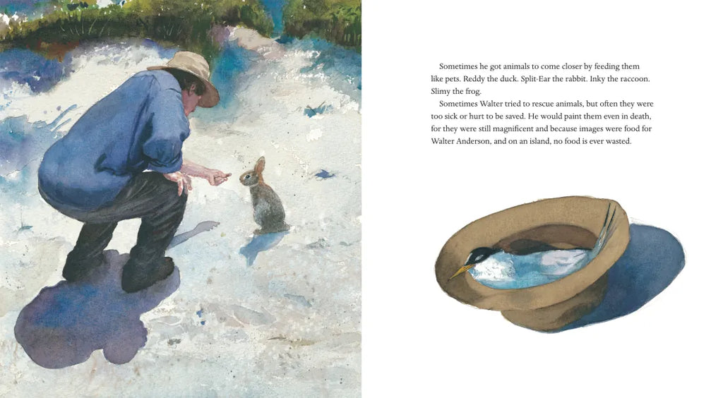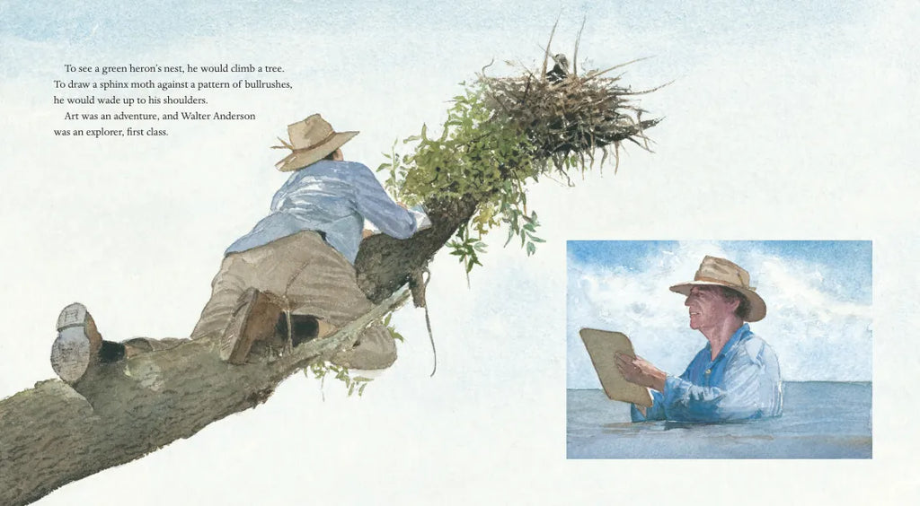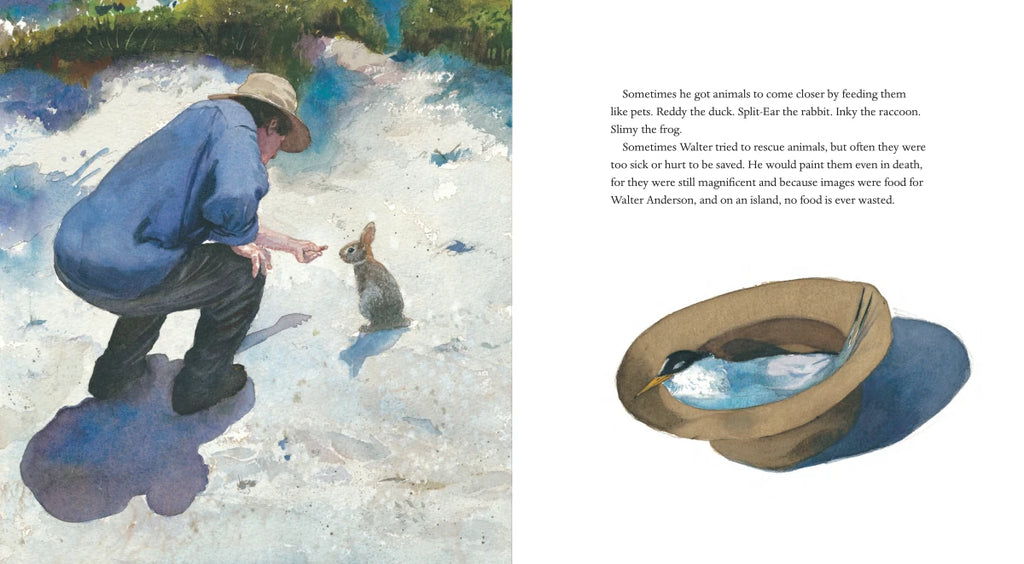 In a beautifully crafted biography, Hester Bass and Caldecott Honor winner E. B. Lewis pay homage to the most famous American artist you’ve never heard of. Reclusive nature-lover Walter Anderson spent weeks at a time on an uninhabited island, sketching and painting the natural surroundings and animals to create some of his most brilliant watercolors, which he kept hidden during his lifetime.