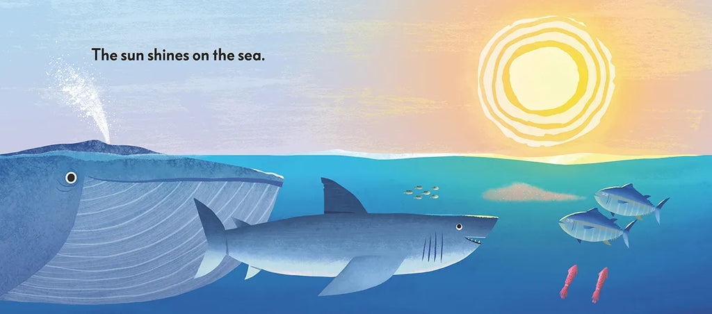 The sun shines on the sea. Phytoplankton soak up the sun. Hungry krill feast on the plankton. Next, a shoal of fish swirl around the krill. Then along comes some squid . . . And on it goes, up the oceanic food chain, from squid to tuna to shark and, finally, to whale. But what is the whale hungry for? Little ones will delight in lifting the flaps to discover what’s in each creature’s belly—and will enjoy the unexpected twist of the largest animal feasting on one of the smallest. With enticing flaps, simple language, and brightly stylized illustrations, Michael Slack takes very young children on a sea journey up the food chain and around in a circle for a final surprise.