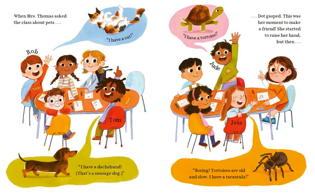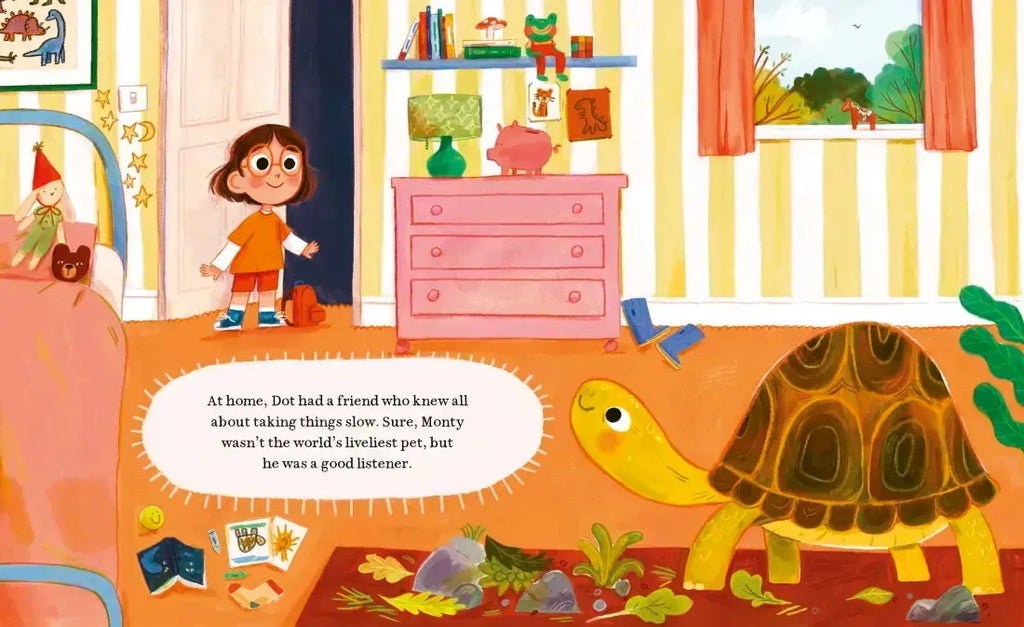 When Dot feels nervous at her new school, she comes up with a clever plan using her pet tortoise, Monty, to make friends.