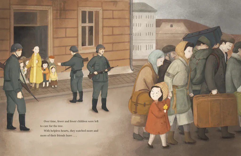 During World War Two, in the concentration camp Terezin, a group of Jewish children and their devoted teacher planted and nurtured a smuggled-in sapling. Over time fewer and fewer children were left to care for the little tree, but those who remained kept lovingly sharing their water with it. When the war finally ended and the prisoners were freed, the sapling had grown into a strong five-foot-tall maple.
