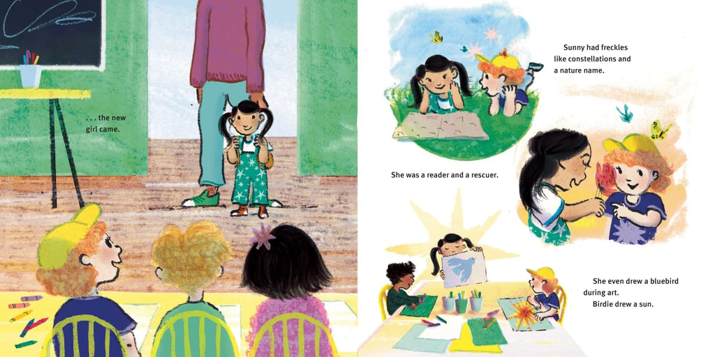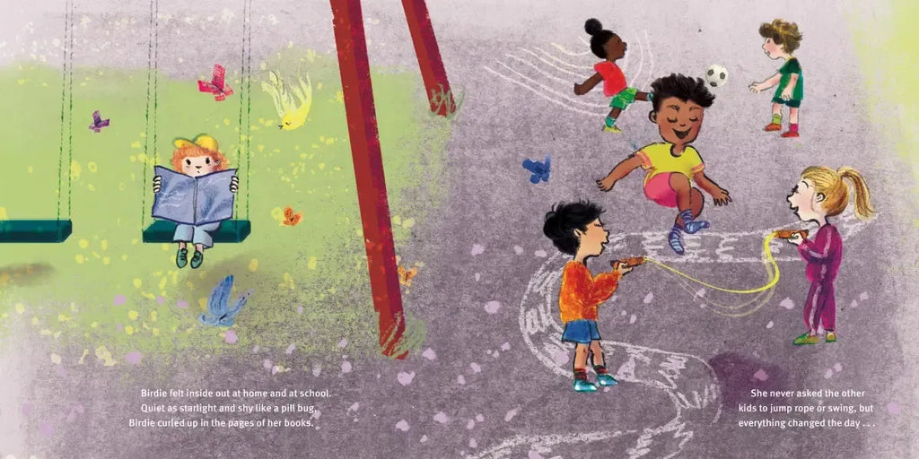Birdie finds comfort in nature and books, but more than anything she longs for connection, to be understood. At school, Birdie feels like an outsider. Quiet and shy, she prefers to read by herself, rather than jump rope or swing with the other kids. That all changes when Sunny, the new girl, comes along. Like Birdie, Sunny has a nature name. She also likes to read, and loves to rescue bugs. And when Sunny smiles at her, Birdie’s heart balloons like a parachute.