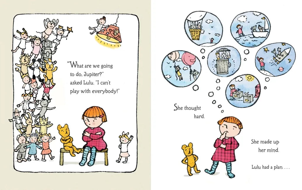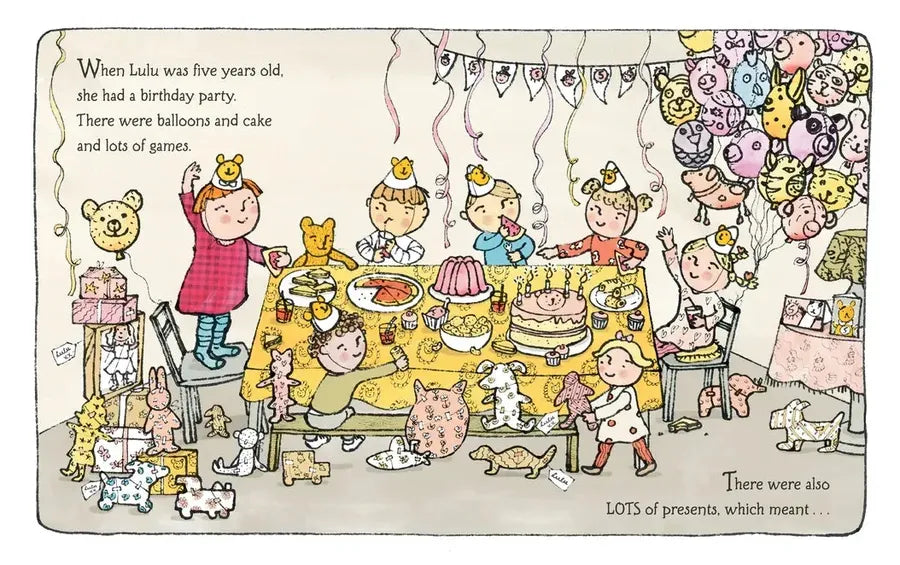 Ever since Lulu was a little baby, she's had Jupiter, her cuddly and most-favorite-ever teddy bear. But with each new birthday she gets new toys. And every Christmas she gets even more toys. Lulu's toys are absolutely everywhere! And now she can't even fit into her own bed. So Lulu decides to throw a very special party for all her toys—and all her friends. Charming and humorous, here is a story sure to resonate with toy-hungry children and slightly indulgent parents everywhere.