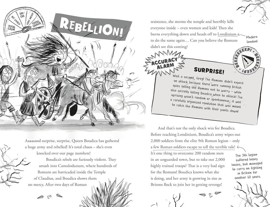 Think history is just a boring list of facts and dates? Think again! History is hectic, exciting and unpredictable – in fact, it’s absolute CHAOS! Join bestselling author Greg Jenner on a riotously fun journey through Roman Britain, from brilliant beginnings to epic ending. Accompanied by expert Roman historian Dr Emma Southon and with side-splitting illustrations from Rikin Parekh, this whirlwind tour will cover everything you need to know about Roman Britain and show you what it would REALLY have been like to live through hundreds of years of chaotic history. Hold on tight, because, with history, you’ll never believe what happens next!