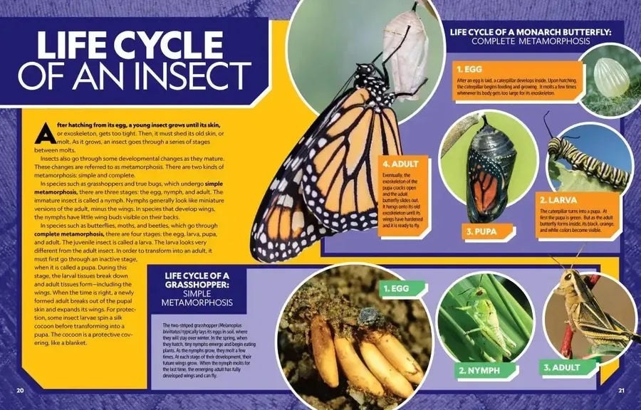 Featuring snakeflies, the red fire ant, the Indian domino cockroach, and hundreds more, this expanded edition explores all your favorite creatures that creep, crawl, and climb. Wonder how different spiders make their webs? This book has you covered with facts, photos, and explanations of the six different types of webs! If you think caterpillars are cool and butterflies are beautiful, you won’t want to miss the section on metamorphosis. Reviewed by an expert in the field of entomology and featuring completely updated facts and figures, parents, teachers, and young readers can be sure they’re getting the latest and greatest information on all things bugs. It’s the perfect fun-filled reference book for use at school or home.