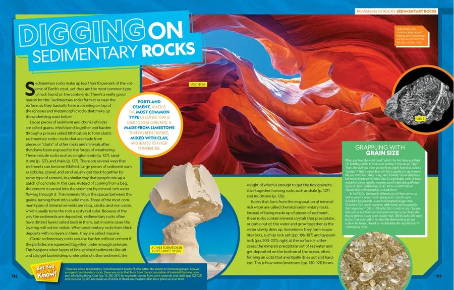 Welcome to the amazing world of rocks and minerals! Let's start at the very beginning, with an introduction to the origin of our rocky planet, then move on to explore the world of igneous, sedimentary, and metamorphic rocks. You'll discover how they form, what makes them unique, and most importantly, how to identify them in your own backyard. Complete with the origin and description of some of the most important rock-forming minerals, readers will discover how some of the most beautiful and precious stones on the planet are created by the Earth itself. Each chapter includes dozens of profiles of amazing rocks and minerals, fun facts, sidebars, photo galleries, and more. At the end of the book readers will get to meet a real geologist and learn just what it's like to dig in the dirt for a living. Thematic spreads cover topics such as birthstones, cool crystals, digging for diamonds, and more. And, of course, amazing photography and colorful graphics add visual awe to the lively text.