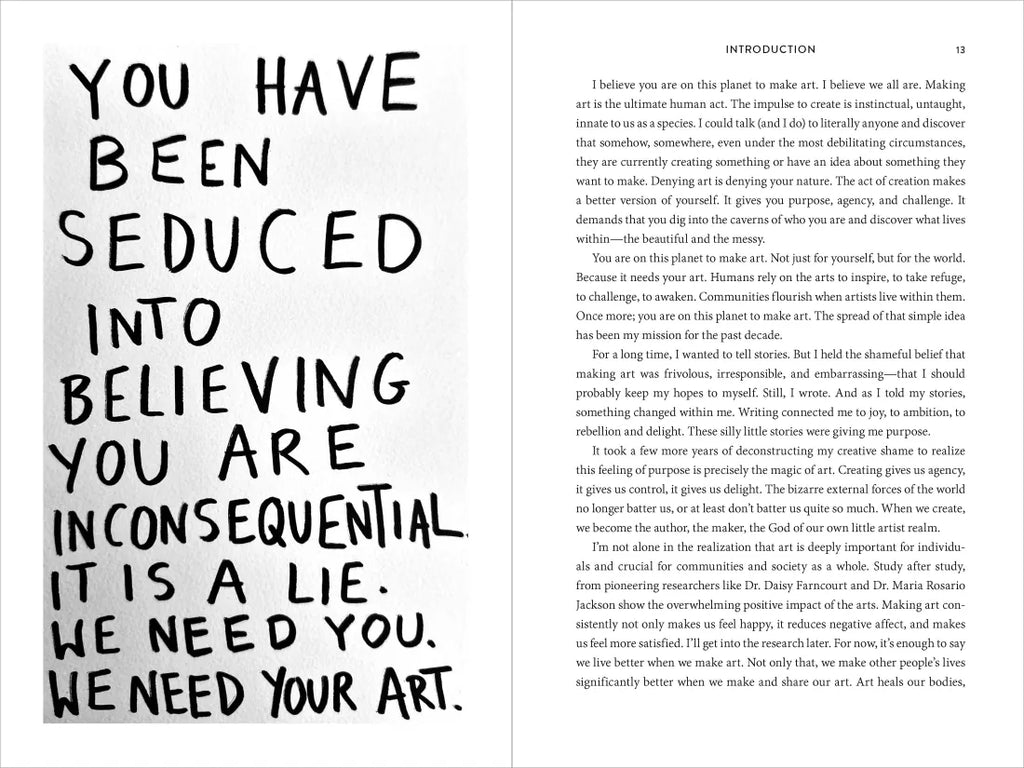 We Need Your Art is a revolutionary reprogramming of everything we have been taught and told about being a creative, removing the shame and fear we may feel at dubbing ourselves artists and inviting us to create proudly, with celebration. This book is a warm hug, a pep talk, the wise teacher you always wanted, the loving parent you needed, and the fire in your belly that you need to get roaring.