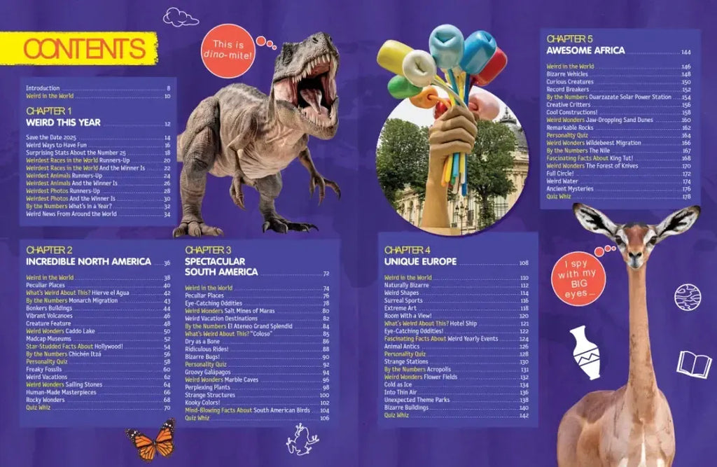 This annual collection is updated each year with NEW world’s weirdest winners from around the globe, weird news, fresh facts, and strange sites, animals, and events for every continent. Weird But True! World 2025 is the latest, greatest, and WEIRDEST edition yet.