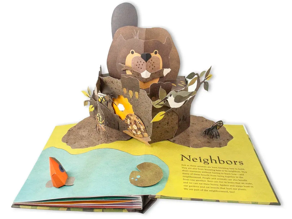 In this stunning pop-up book, meet seven animal builders and see how their unique skills help them survive—and to live together in harmony in the neighborwood.