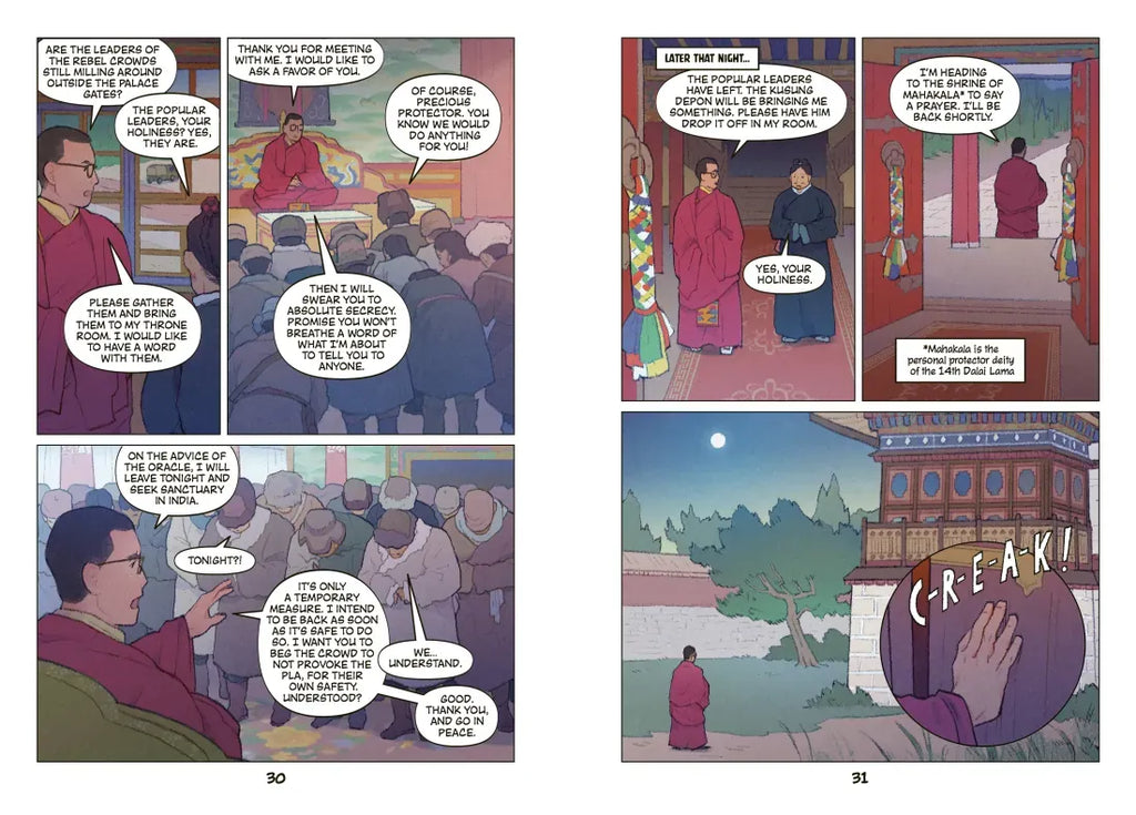 Discover the story behind the Fourteenth Dalai Lama's journey from Tibet to permanent exile in India in this captivating graphic novel written by 2020 APALA Award-winning author Teresa Robeson and illustrator Angela Poon.