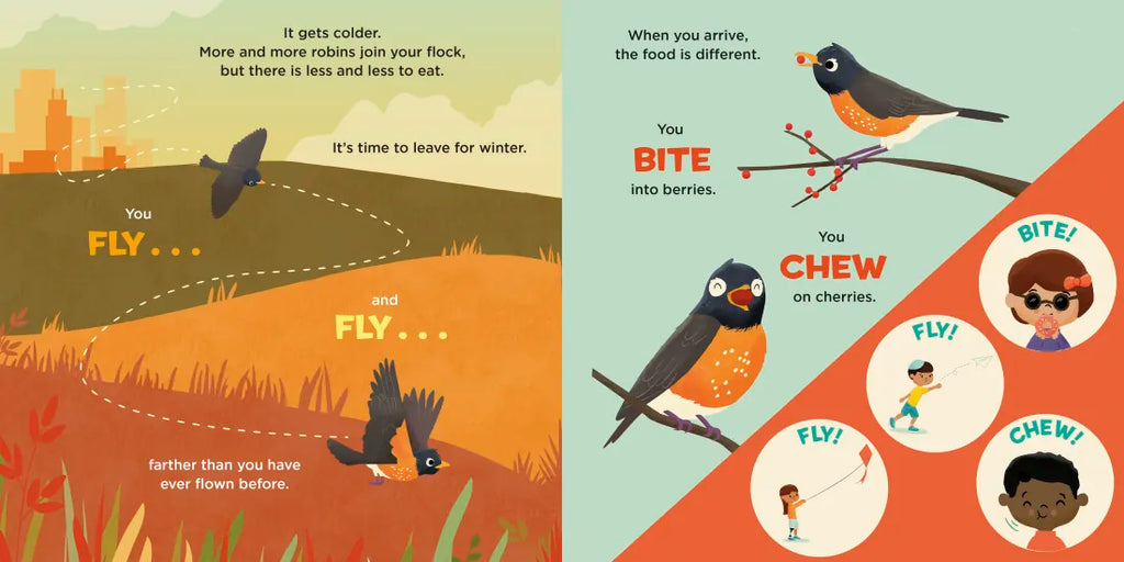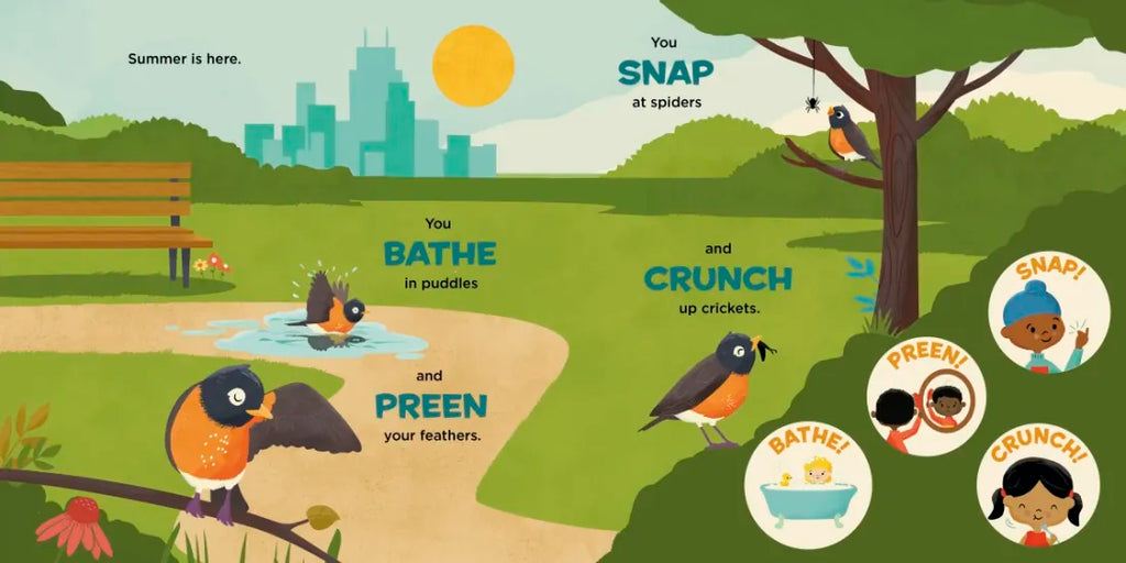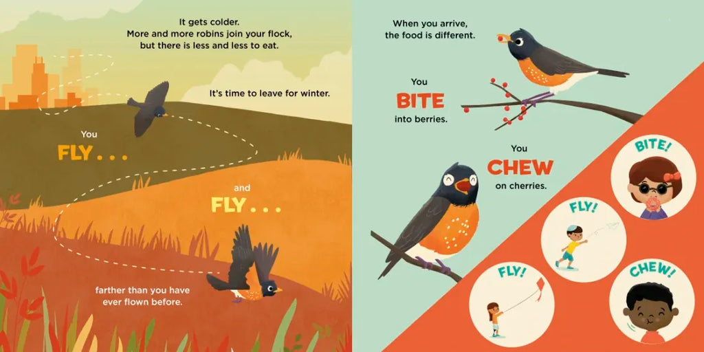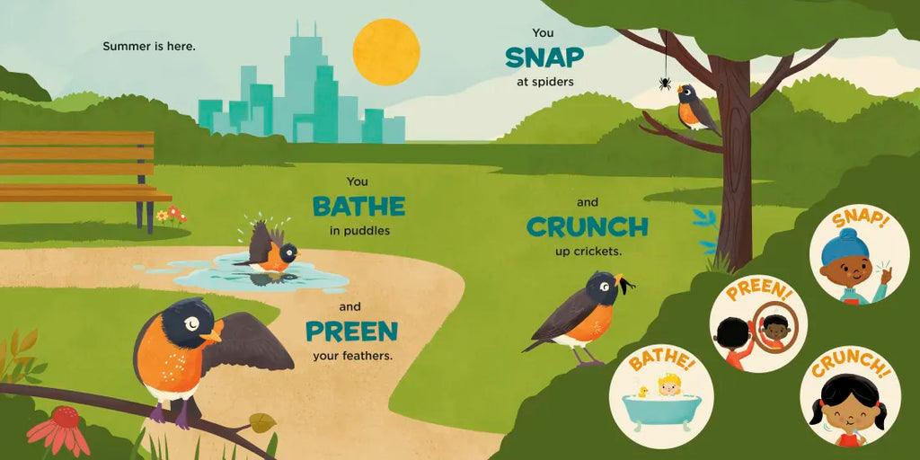 This playful and informative series invites you to take a closer look at the amazing animals that live right alongside you in rural, suburban, and urban landscapes across North America. In each book, words and art inspire you to act out animal actions that are not so different from your own habits. And robust backmatter offers even more information and fun with fascinating facts, a glossary, activities, and tips on how to help and protect robins. From the animals’ families and foods to their environments and behaviors, let’s meet your world!