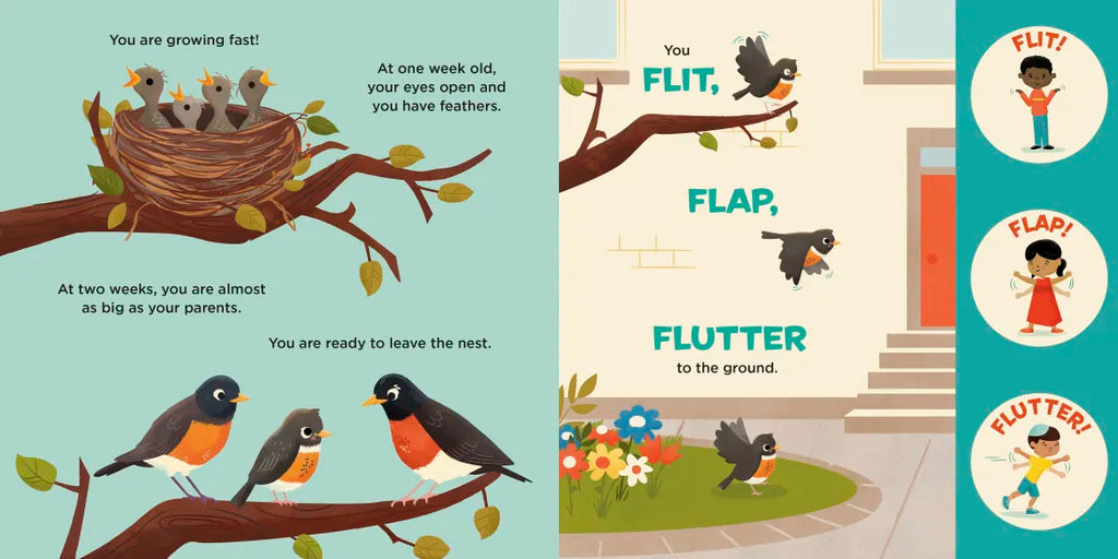 Flit, flap, flutter! You might have seen a robin flying overhead or heard one singing in the trees. Did you know that robins tidy themselves up, teach their babies to find food, and are almost fully grown in just two weeks? From birth to first flutter and beyond, discover all that goes into being a robin in this charming picture book, the third in the Meet Your World series.