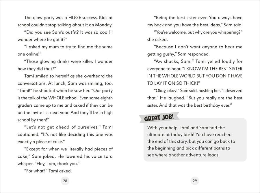 Twins Tami and Sam want to organize the ultimate best-ever birthday palooza. But it turns out Tami and Sam have very different ideas on what makes the perfect party. Can they find a compromise before it's too late? Navigate the paths of collaboration, creativity, and resourcefulness… What will you decide?