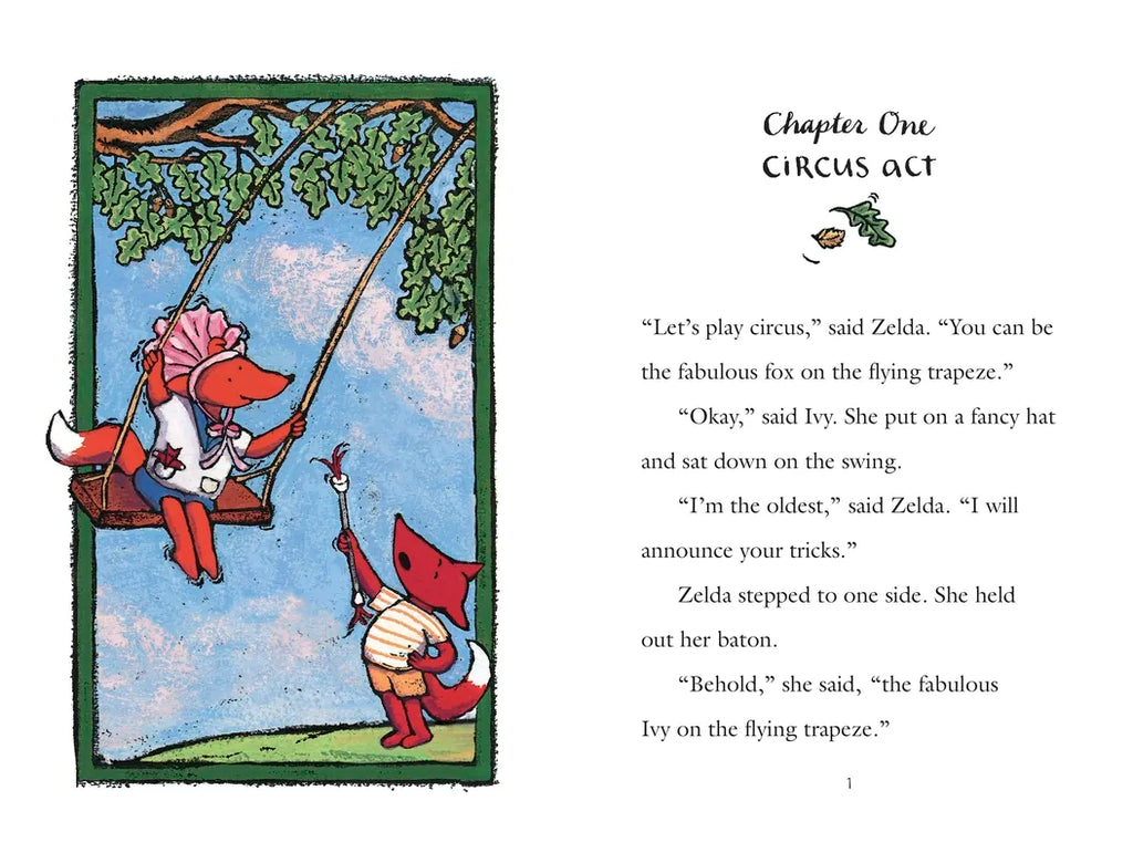 Zelda and Ivy are fox sisters with a flair for the dramatic. Their exploits unfold with plenty of sugar and sass in this spirited trio of stories. Wry and genuine, the linked episodes and expressive illustrations will strike home with beginning readers, especially those who’ve experienced the warmth—and occasional wrath—of a sibling’s attentions.