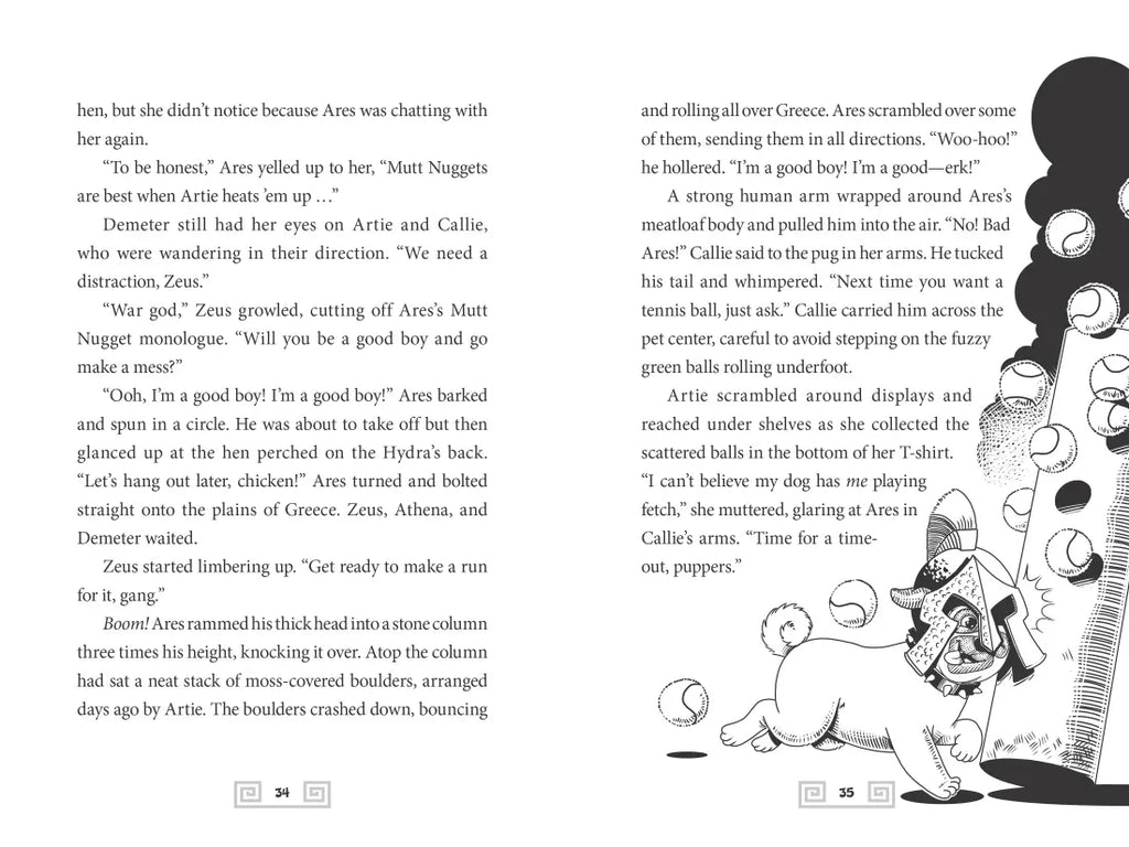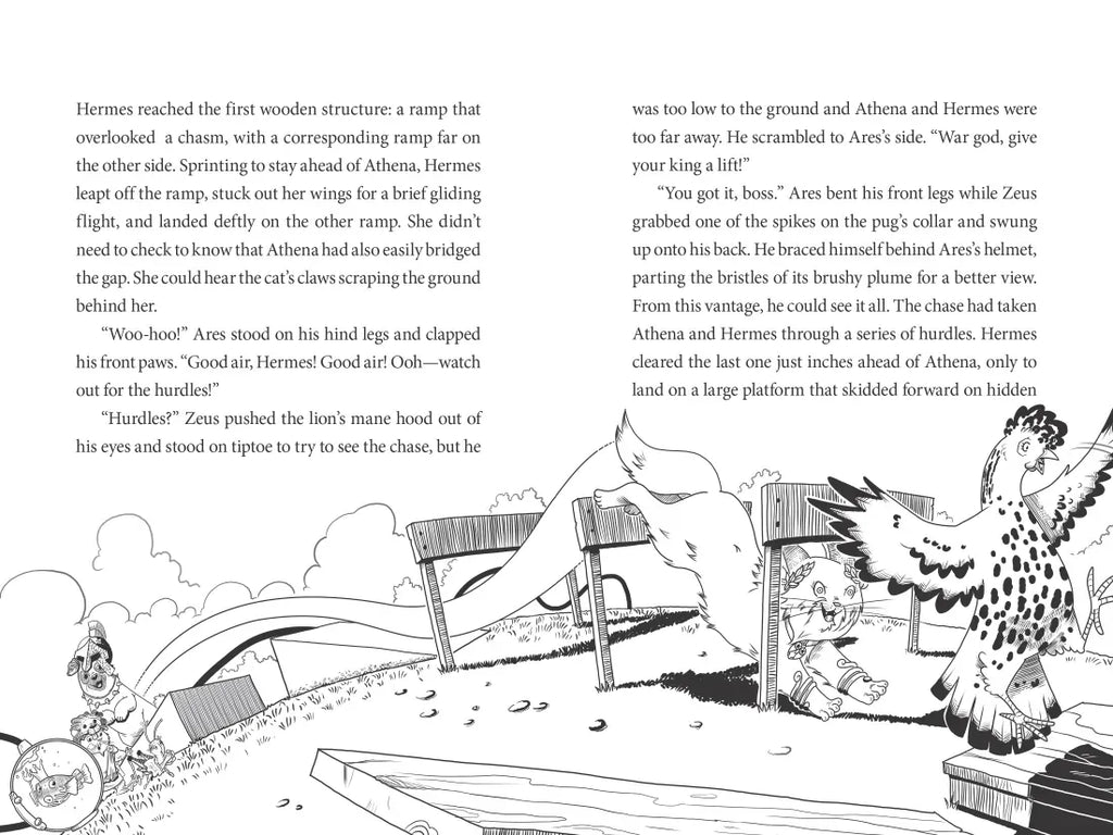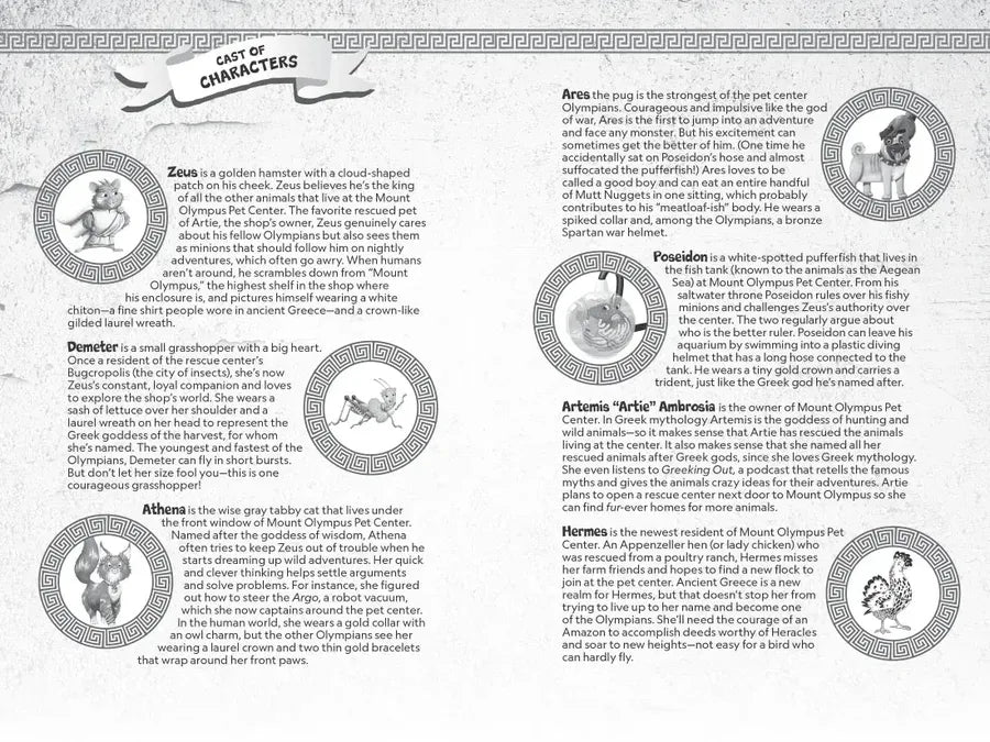 The pets of Mount Olympus Pet Center are a true team: They conquer epic quests as easily as Ares the pug scarfs down Mutt Nuggets and they vanquish enemies who are pricklier than the spines on Poseidon the pufferfish. But when a chicken named Hermes shows up one day, things take a turn, and before the team knows it, the Oracle has spoken and the mysterious Trials of Hairy-Clees begin! Who will become top god? And can Zeus learn to share the limelight to fight alongside Hermes?